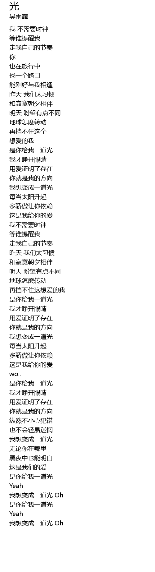 | [03:59.41] | wǒ xiǎng biàn chéng yī dào guāng Oh |