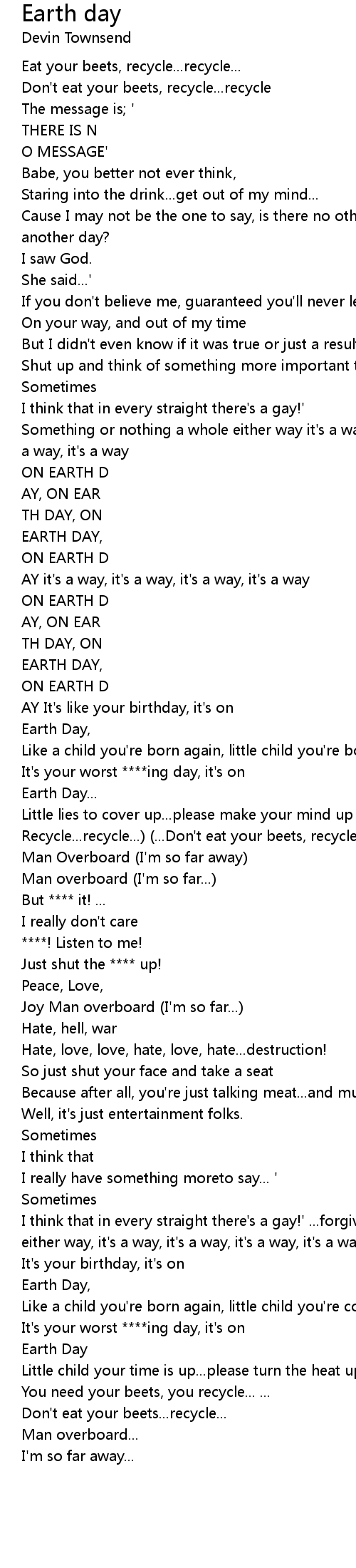Little lies to cover up...please make your mind up (Eat your beets, Recycle...recycle...) (...Don't eat your beets, recycle...recycle) |
