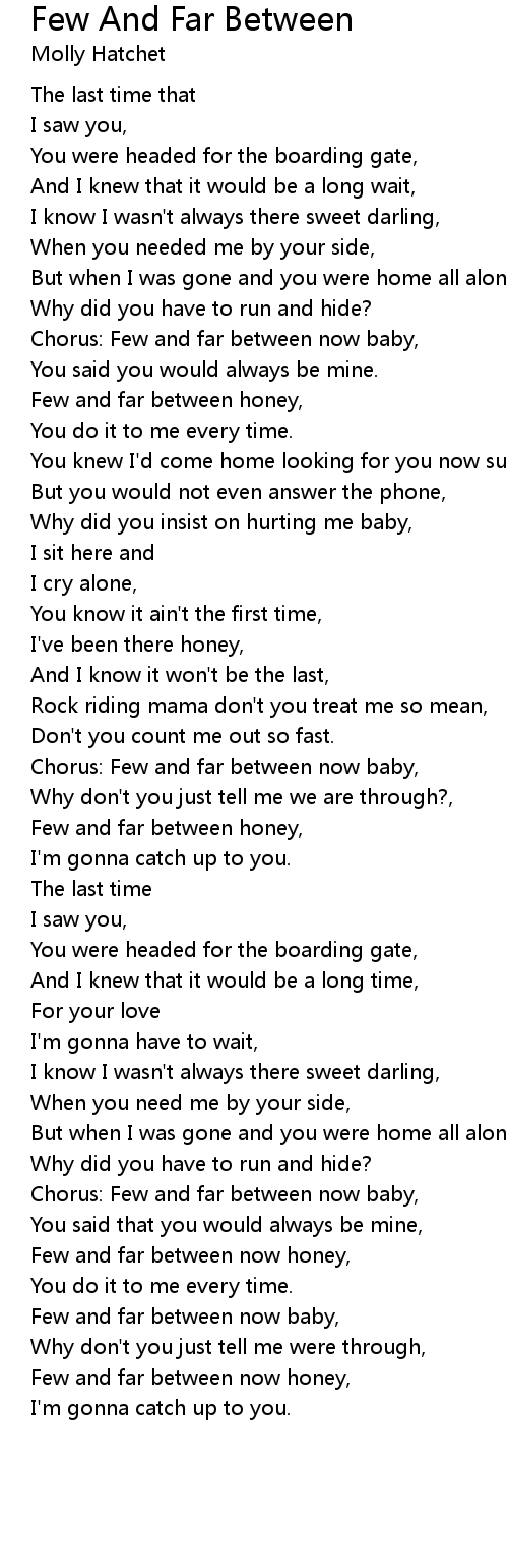 Chorus: Few and far between now baby, |