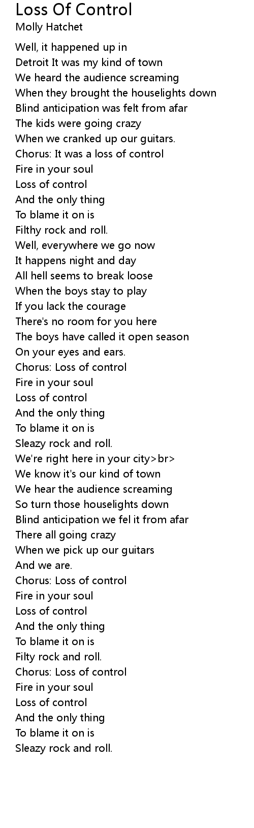 Chorus: It was a loss of control |