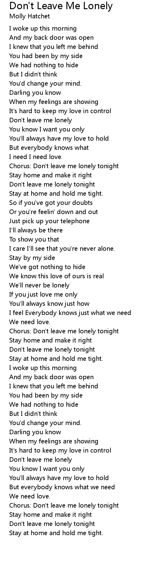 Chorus: Don't leave me lonely tonight