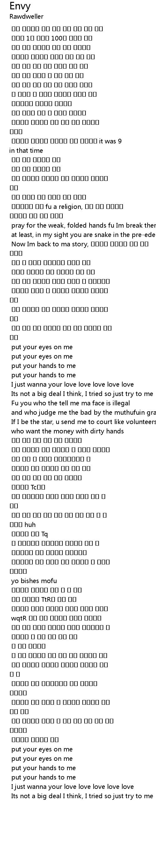 | [02:38.150] | 넌 배나 부여잡어 너만 빼고 내가 배푸는걸 보고 |