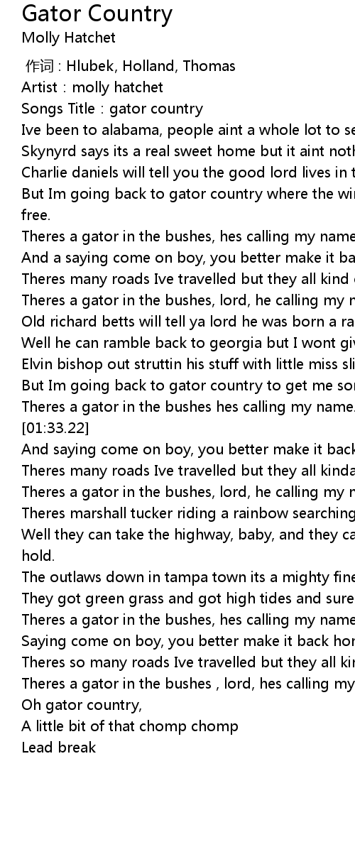 | [00:01.67] | Songs Title: gator country |