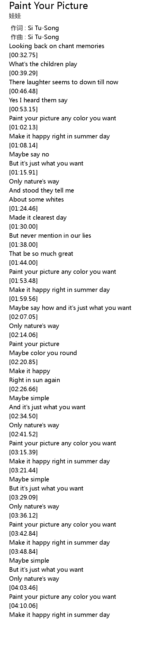 | [02:14.95] | Paint your picture |