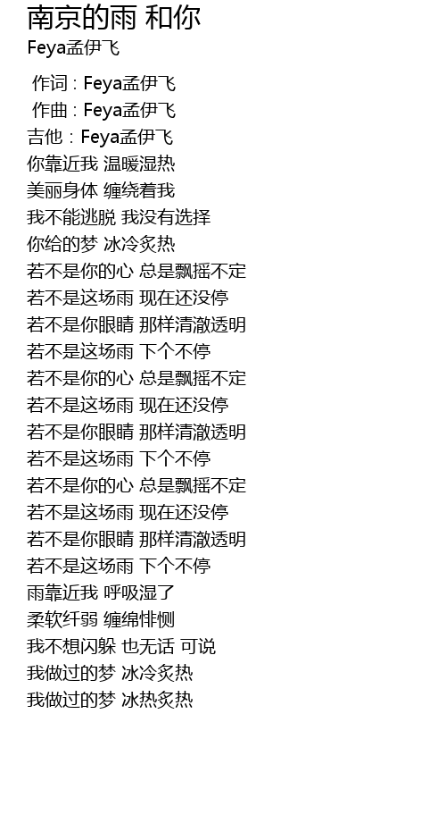 | [00:00.000] | 作词 : Feya孟伊飞 |