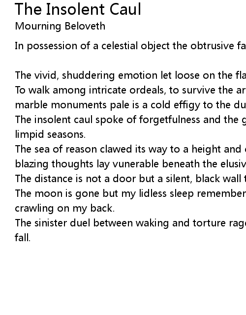 The insolent caul spoke of forgetfulness and the glittering air that tends the limpid seasons. |