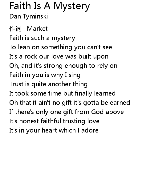 | Song | Faith Is A Mystery |