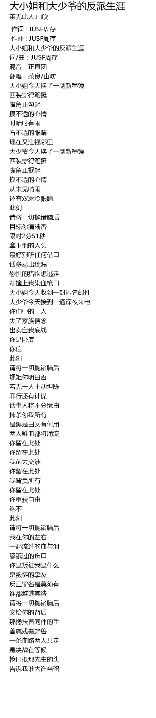 | [00:01.652] | dà xiǎo jiě hé dà shào yé de fǎn pài shēng yá |