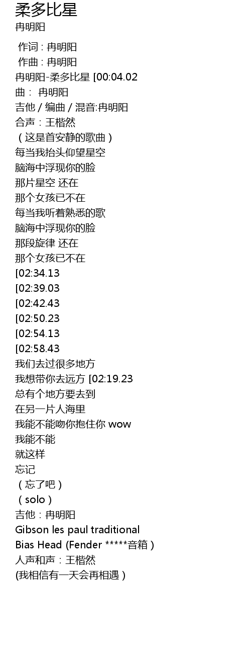 | [04:00.43] | 吉他:冉明阳 |