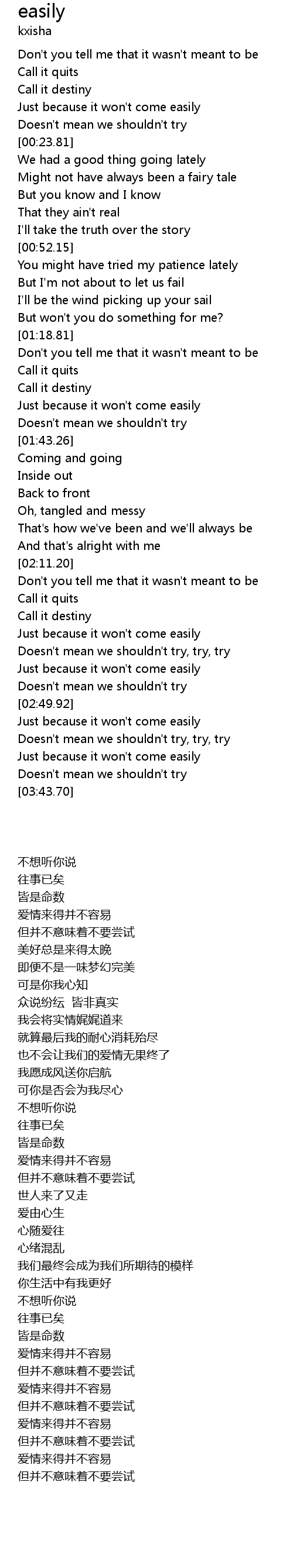 | [03:32.94] | Just because it won't come easily |