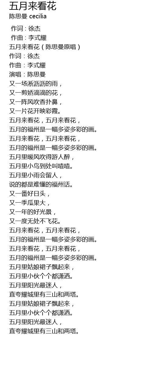 | [00:16.764] | 五月来看花(陈思曼原唱) |