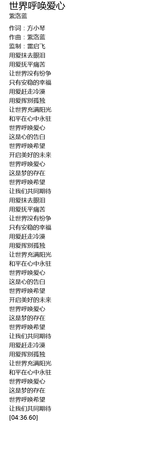 | [01:30.15] | shì jiè hū huàn ài xīn |