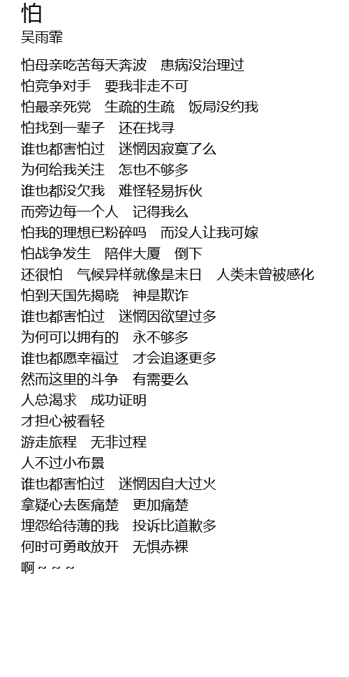 | Song | 怕 |