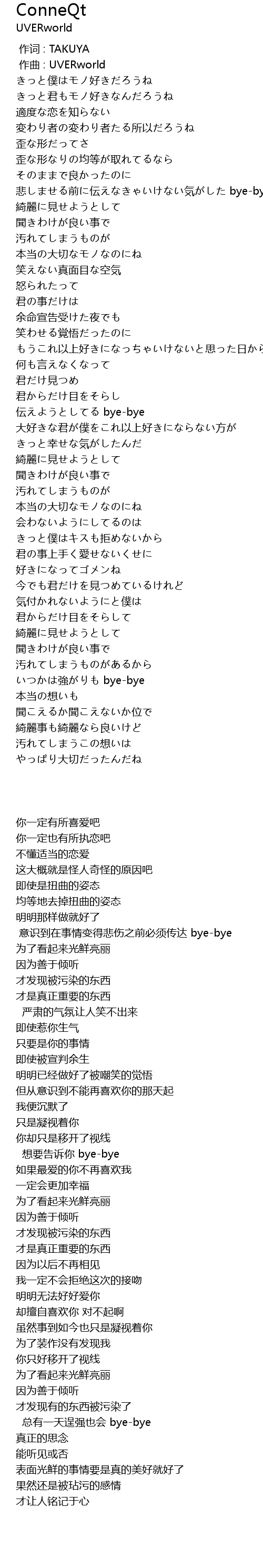 | [00:55.633] | 悲しませる前に伝えなきゃいけない気がした bye-bye |