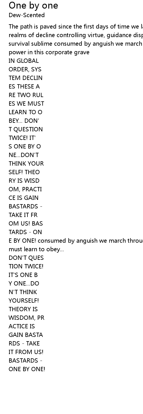 | E BY ONE! consumed by anguish we march through the grey these are two rules we must learn to obey... | |