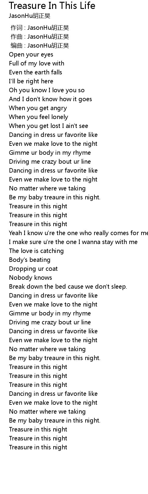 | [00:01.000] | zuo qu : JasonHu hu zheng hao |