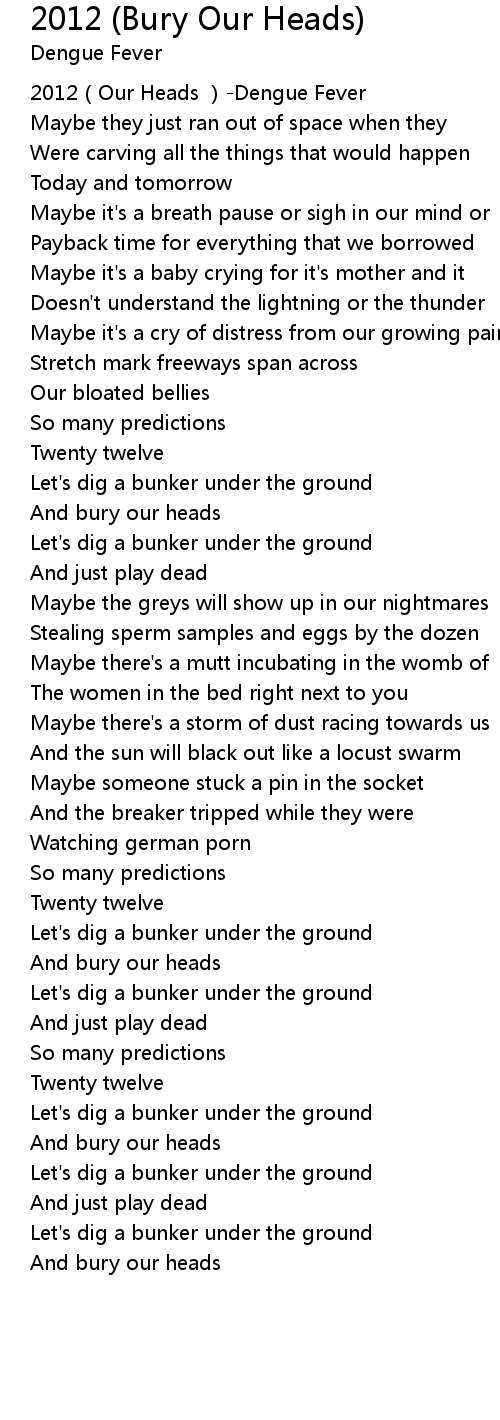 | [00:00.00] | 2012 Our Heads Dengue Fever |