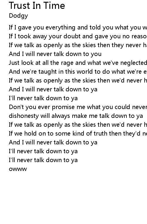 And I will never talk down to you |