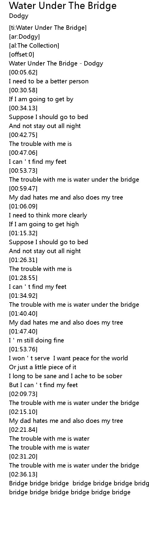 | [00:01.25] | Water Under The Bridge Dodgy |