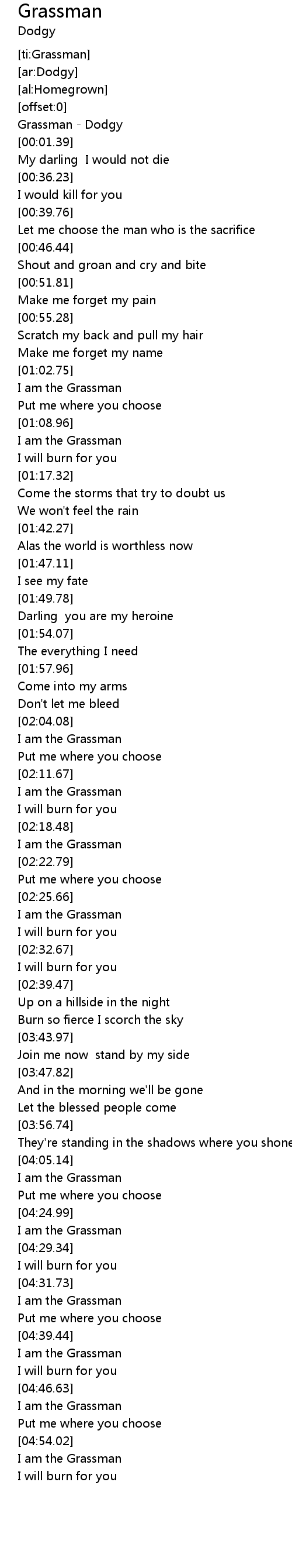 | [04:26.71] | I am the Grassman |