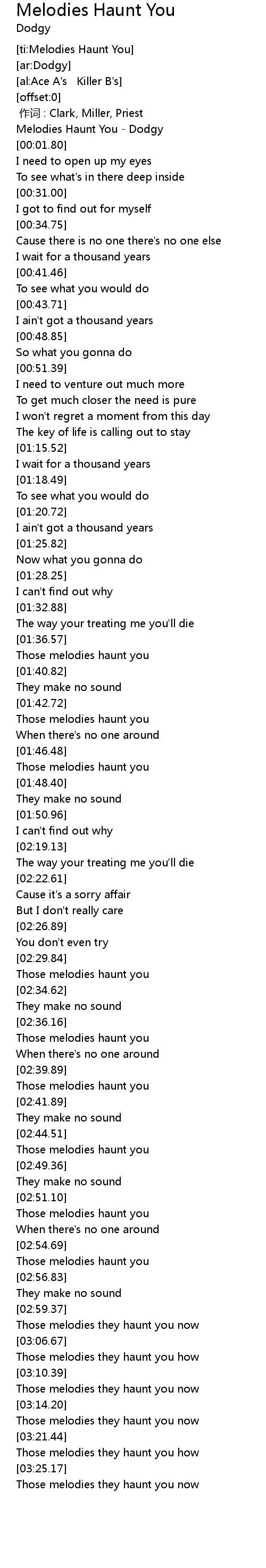 | [00:00.65] | Melodies Haunt You Dodgy |