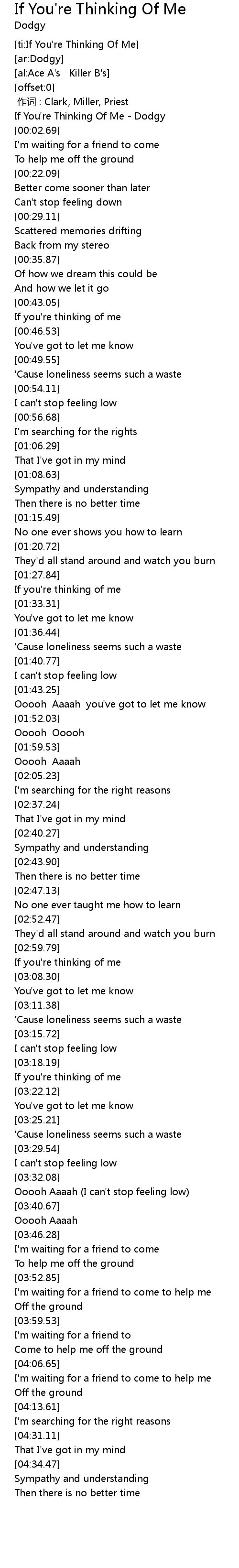 | [00:00.65] | If You're Thinking Of Me - Dodgy |