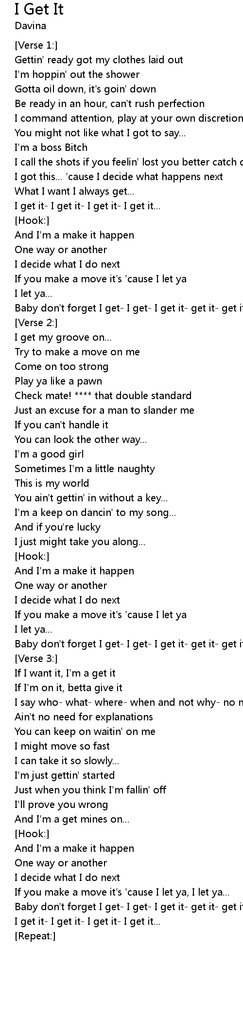 Baby don't forget I get- I get- I get it- get it- get it- get it...