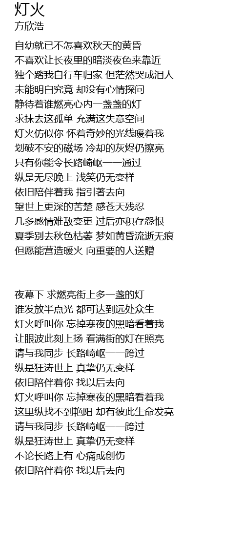 | dēng huǒ hū jiào nǐ wàng diào hán yè de hēi àn kàn zhe wǒ | |