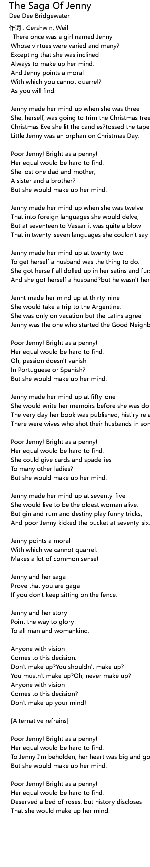 | Jenny made her mind up at fifty-one | |