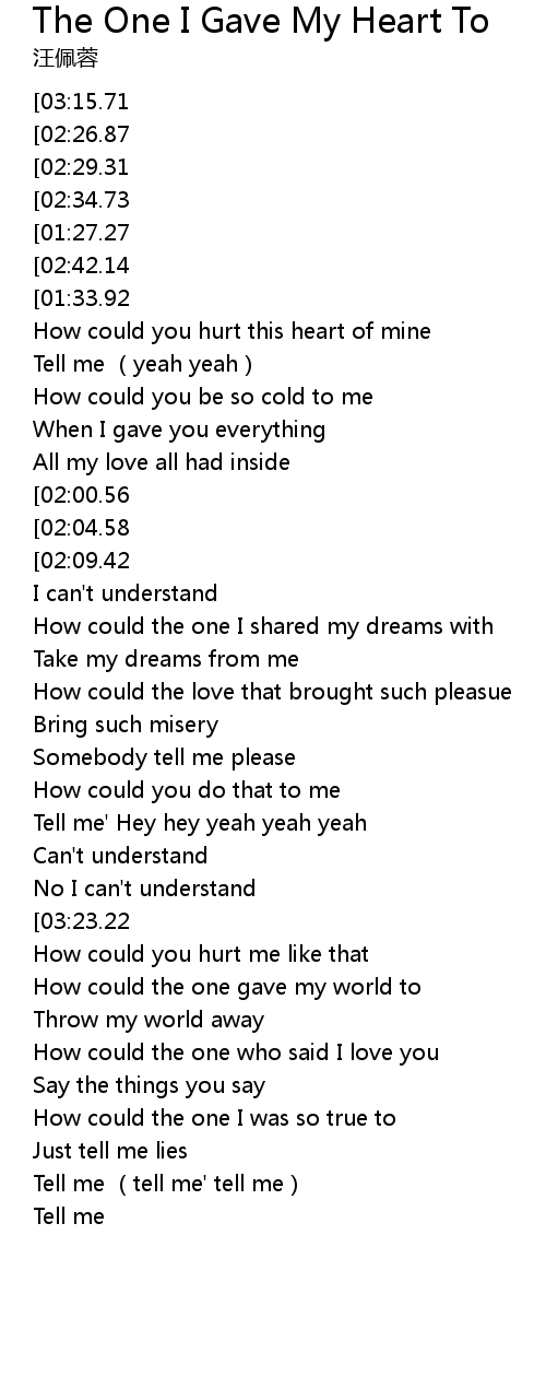 | [02:21.95][03:23.22] | How could the I gave my heart to |