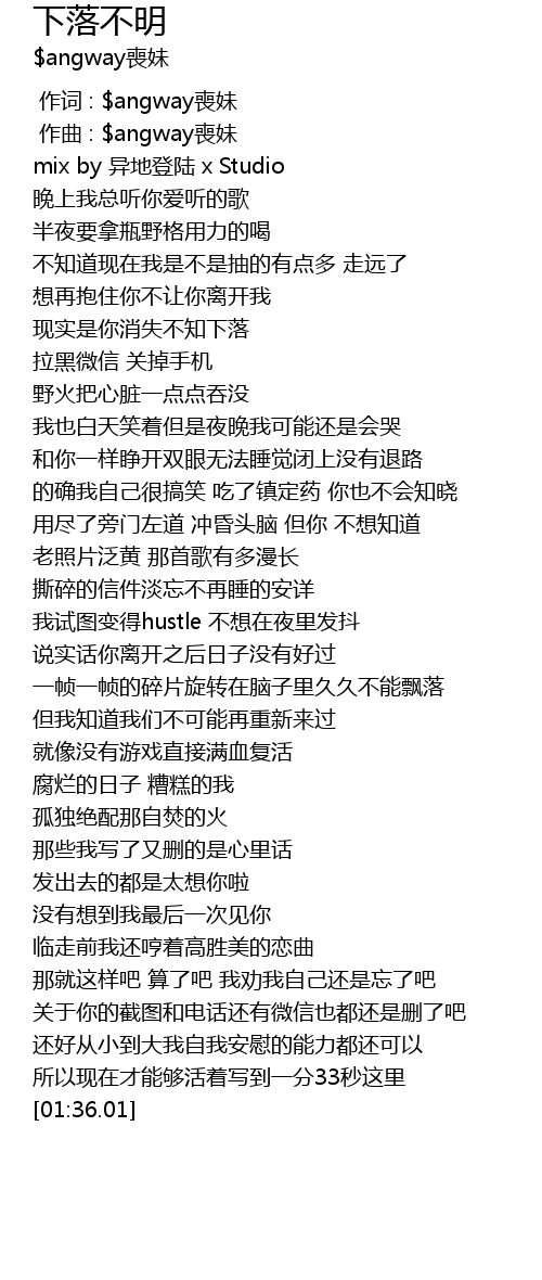 | [00:01.000] | 作曲 : $angway喪妹 |