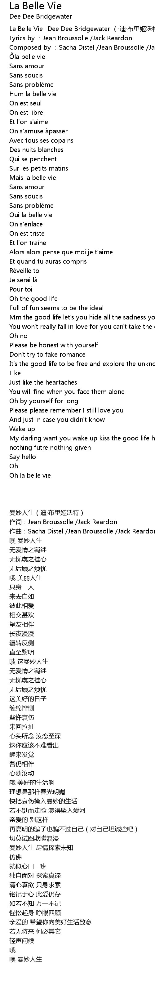 | [00:00.00] | La Belle Vie Dee Dee Bridgewater di bu li ji wo te |
