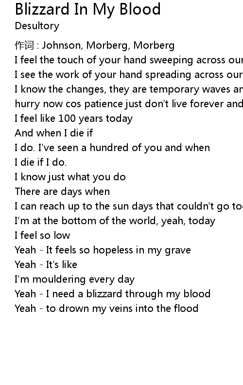 | Yeah I need a blizzard through my blood | |