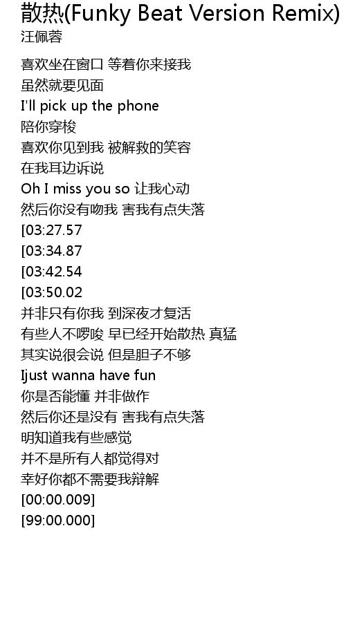 | [02:22.86] | Ijust wanna have fun |