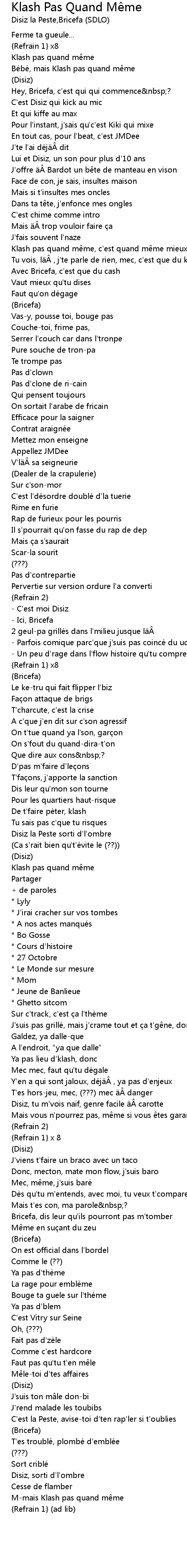 | Klash pas quand même, c'est quand même mieux qu'toi | |