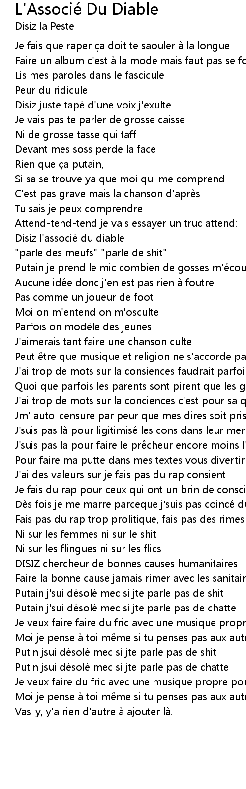 | Song | L'Associé Du Diable |