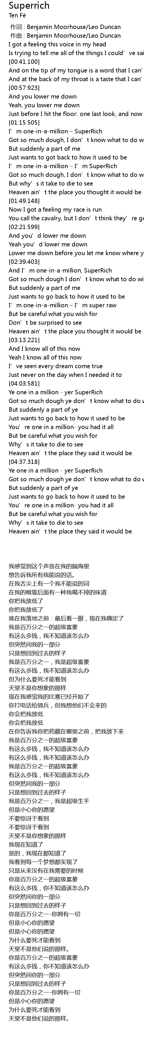 | [02:39.552] | And I' m oneinamillion, SuperRich |