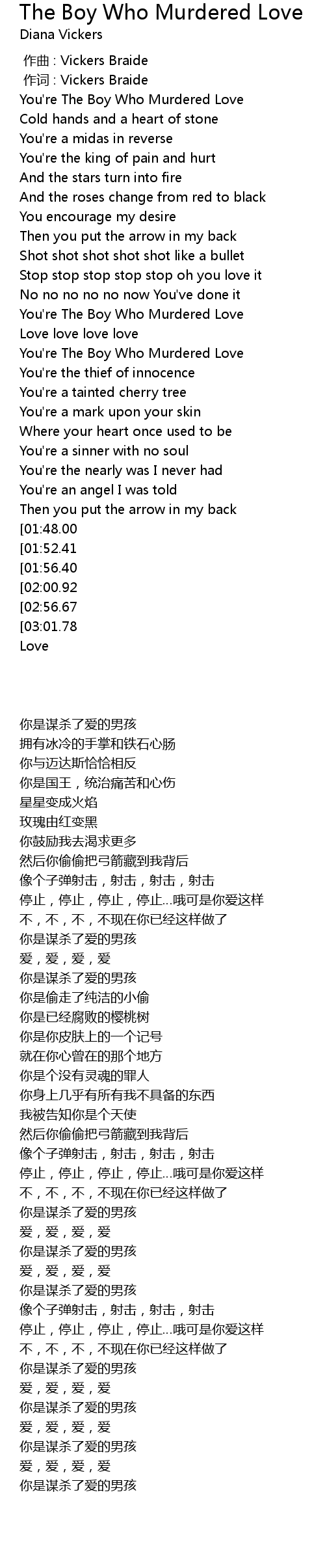 | [02:46.24][02:00.92] | You're The Boy Who Murdered Love |