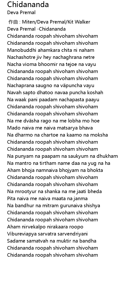 | [00:12.43] | Chidananda roopah shivoham shivoham |