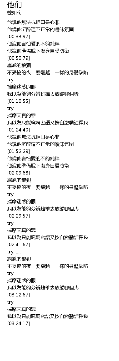| [01:37.13] | 他說他無法抗拒口是心非 |