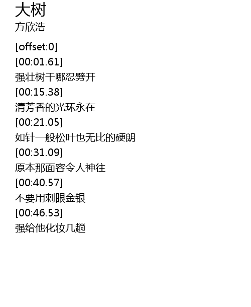 | [00:11.92] | 强壮树干哪忍劈开 |