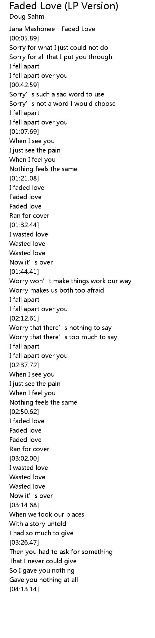 | [00:01.12] | Jana Mashonee - Faded Love |