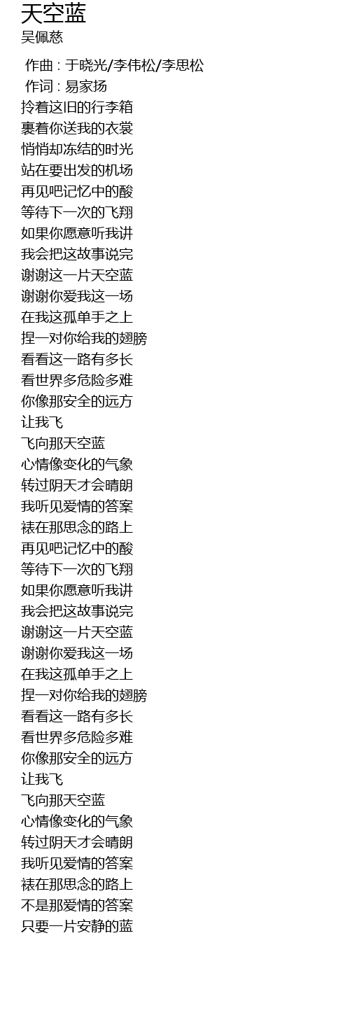 | [03:32.76] | fei xiang na tian kong lan |