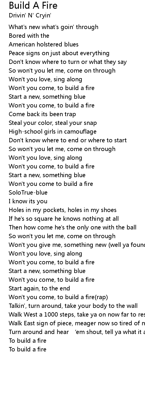 | Won' t you come, to build a fire rap | |