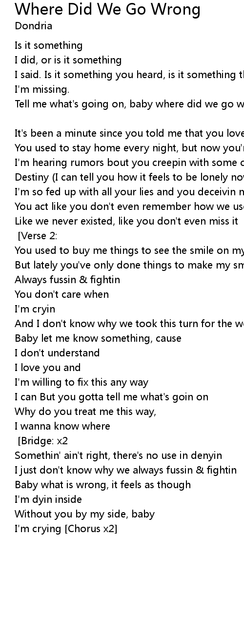 What did I do to make you treat me this way [Chorus x2] [Verse 2:] |