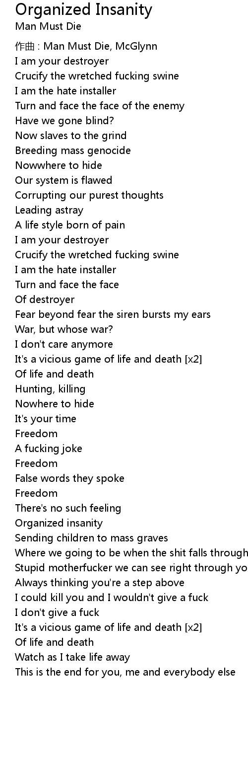 | Song | Organized Insanity |
