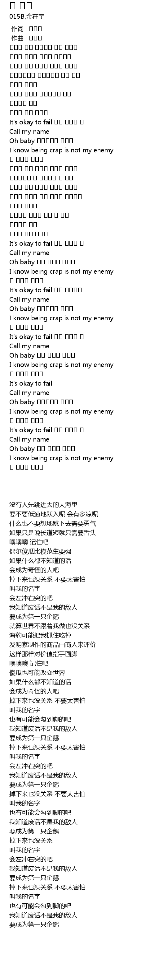 | [02:03.80] | It's okay to fail 너무 겁먹지 마 |