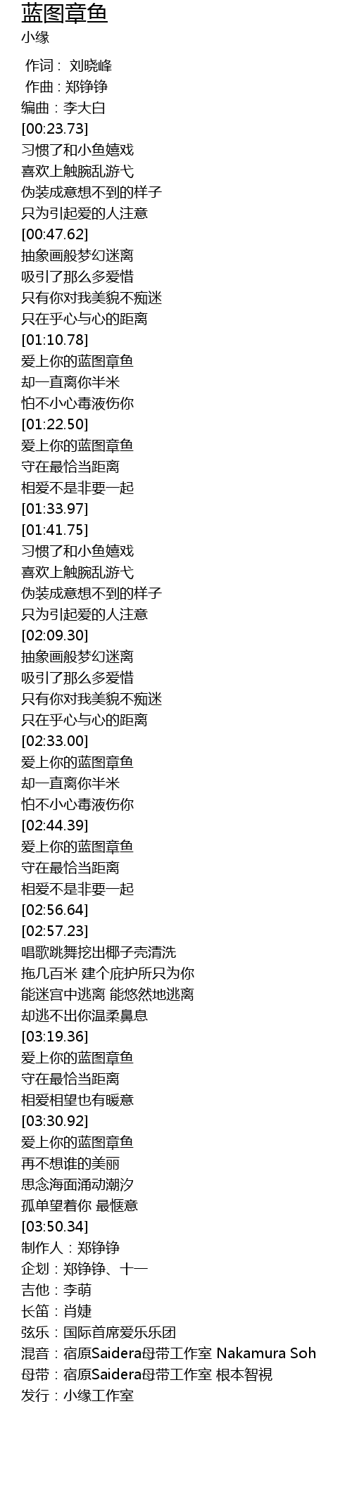 | [03:31.85] | 爱上你的蓝图章鱼 |