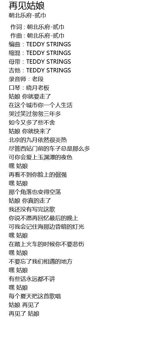 | [00:41.000] | gū niáng nǐ jiù yào zǒu le |