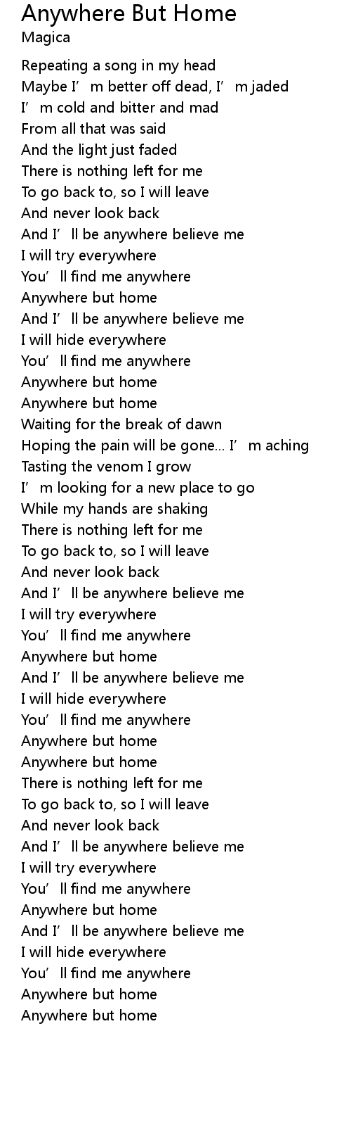 | [04:03.71] | Anywhere but home |